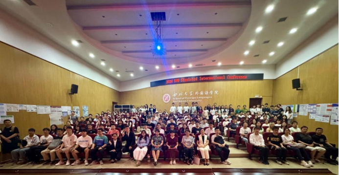 On the morning of June 29, 2024, a simulation international conference for undergraduates and graduate students was held at the Second Foreign Language Classroom on the Chang’an campus of Northwest University. Nearly 200 students from twenty departments engaged in extensive discussions on the topic of “Chinese Wisdom and the Construction of a Community with a Shared Future for Mankind” through keynote speeches, thirteen sub-forums, and poster presentations. The conference was carefully organized by Professor Gao Shuling and Gao Minna from the School of Foreign Languages, with the Vice Dean of Teaching, Li Ming, attending the opening ceremony and delivering a speech.