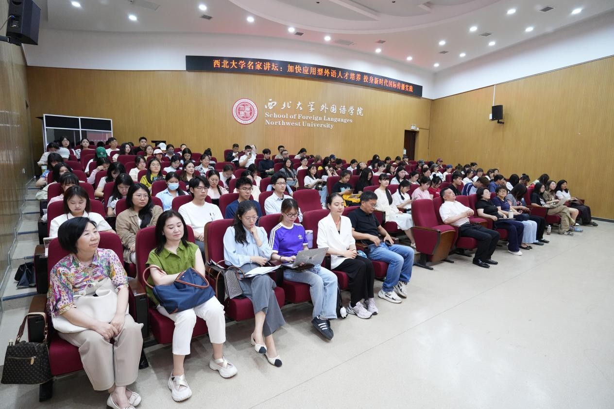 On the afternoon of May 16, 2025, Huang Yulong, Vice President of the Translators Association of China and Director of the CICG Academy of Translation and Interpretation, visited our school at Northwest University. He delivered a lecture titled “Accelerating the Cultivation of Applied Foreign Language Talent and Engaging in International Communication Practices in the New Era.” The lecture was hosted by Su Rui, Vice Dean of the School of Foreign Languages. Over 120 teachers and students, both from within and outside the university, attended the lecture.