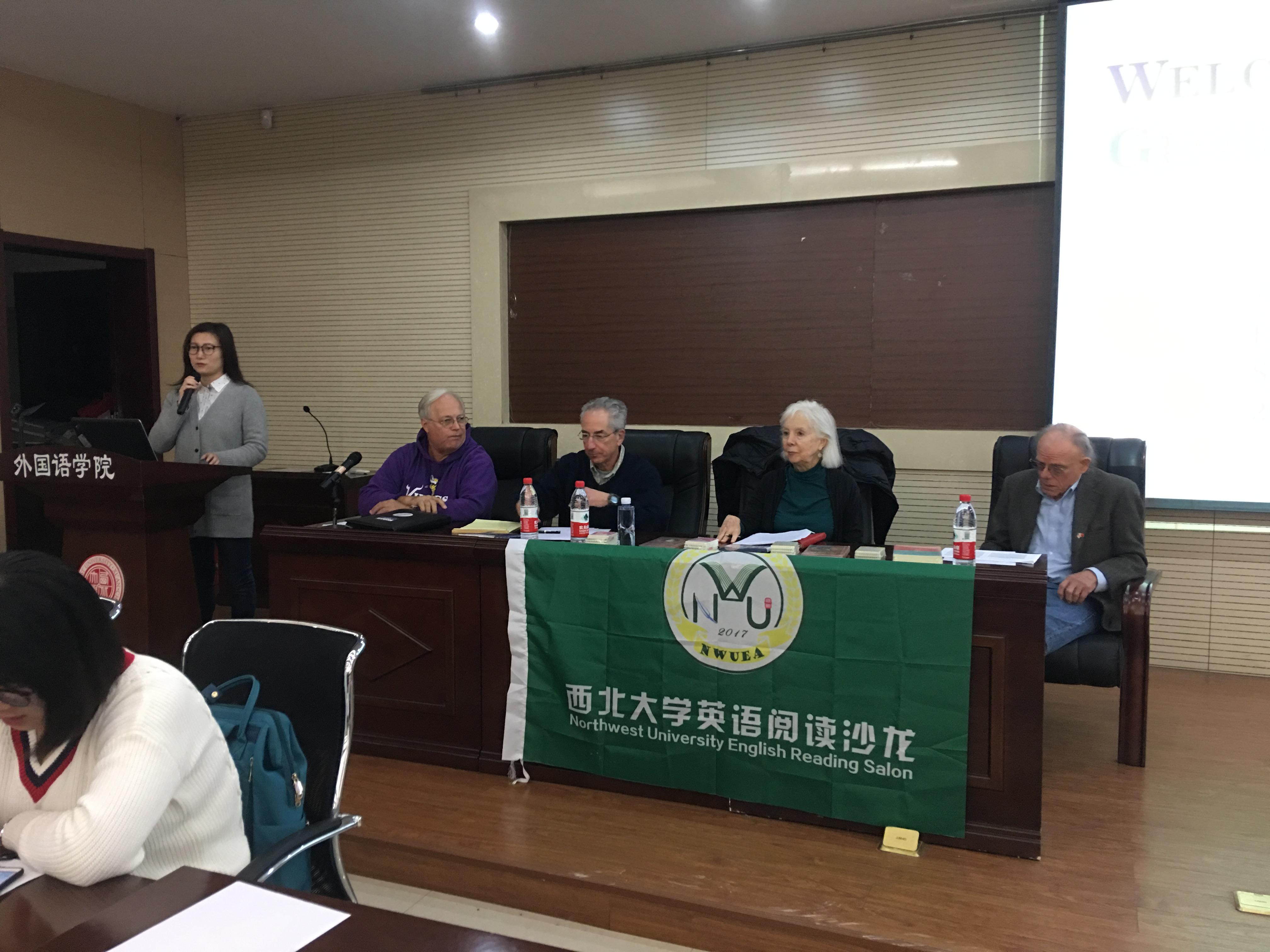 2018年10月30日下午,西北大学英语读写演讲基地阅读沙龙团队成功举办了“名师导读”英语阅读及读书有感写作比赛活动活动在我院四号楼一层高级口译实验室进行,由阅读大赛指导团队负责人张敏老师主持,阅读指导团队石岩老师协助组织,四位美国志愿者应邀和近100位学生参与了活动。