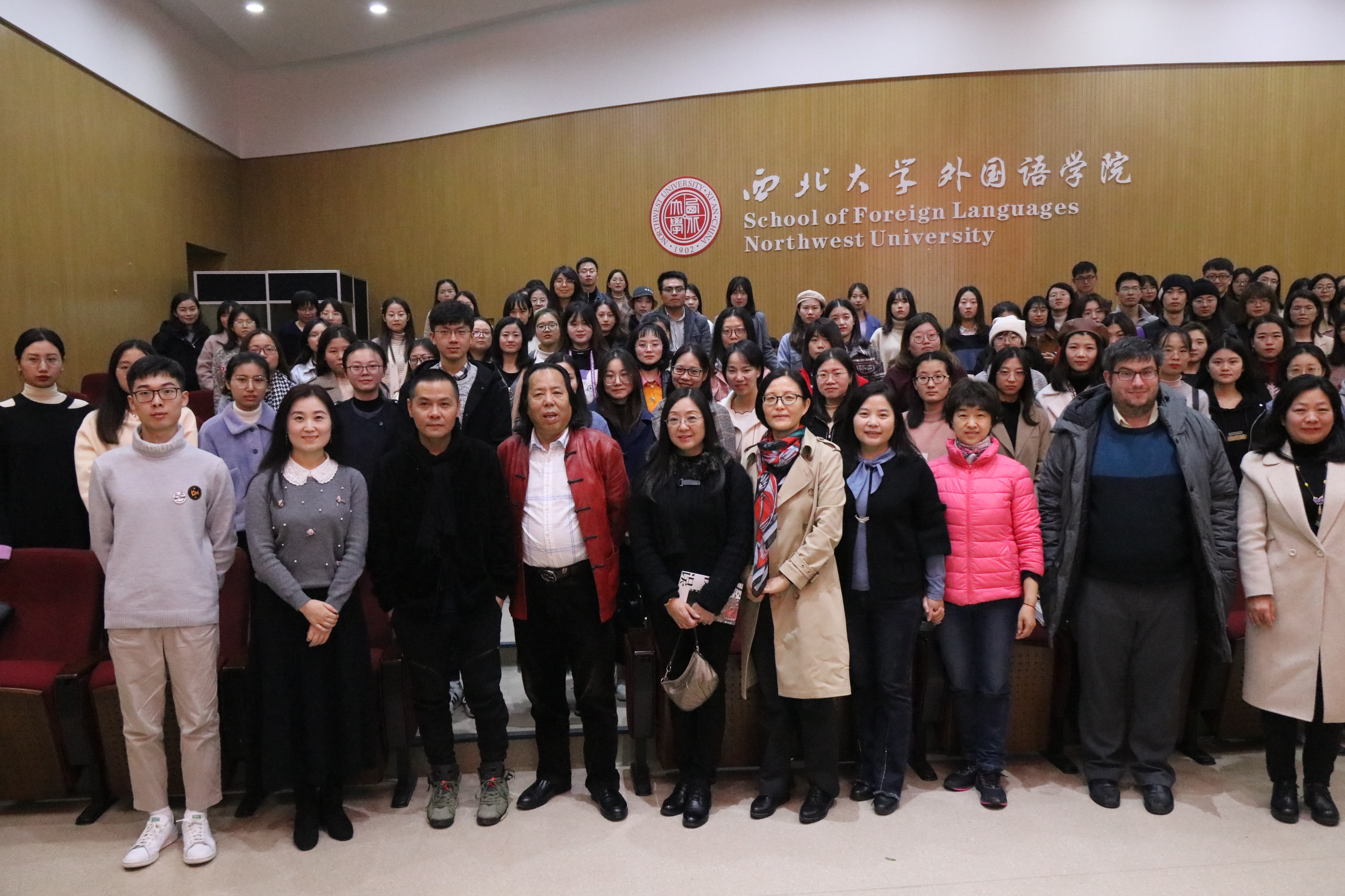 11月6日下午,《延河》杂志社副主编、第七届鲁迅文学奖得主——弋舟先生的短篇小说选《黄金》英译授权仪式在我院第二课堂报告厅举行。我院胡宗锋教授、苏蕊副教授、罗宾副教授等主要译者出席。授权仪式之后,弋舟为我院师生做了题为“建构我们文学的世界”的主题报告,报告由我院院长胡宗锋教授主持,数百名师生参会