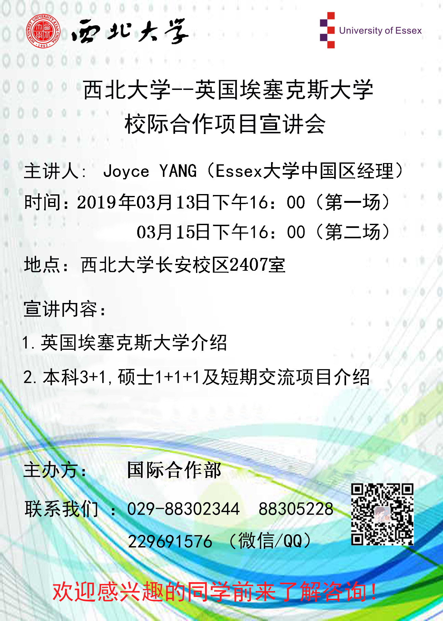 西北大学与英国埃塞克斯大学校际合作项目报名及宣讲会通知