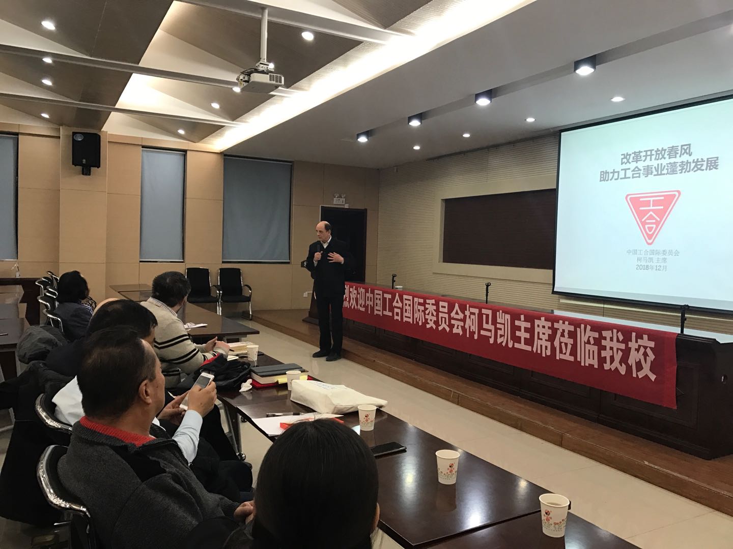 2018年12月26-27日,中国工合国际委员会主席Michael Crook(柯马凯),国际友人研究会常务理事、美籍华人刘欣欣,中国工合国际委员会副秘书长吴海丽一行三人应我院邀请,来我院讲座并考察合作项目。