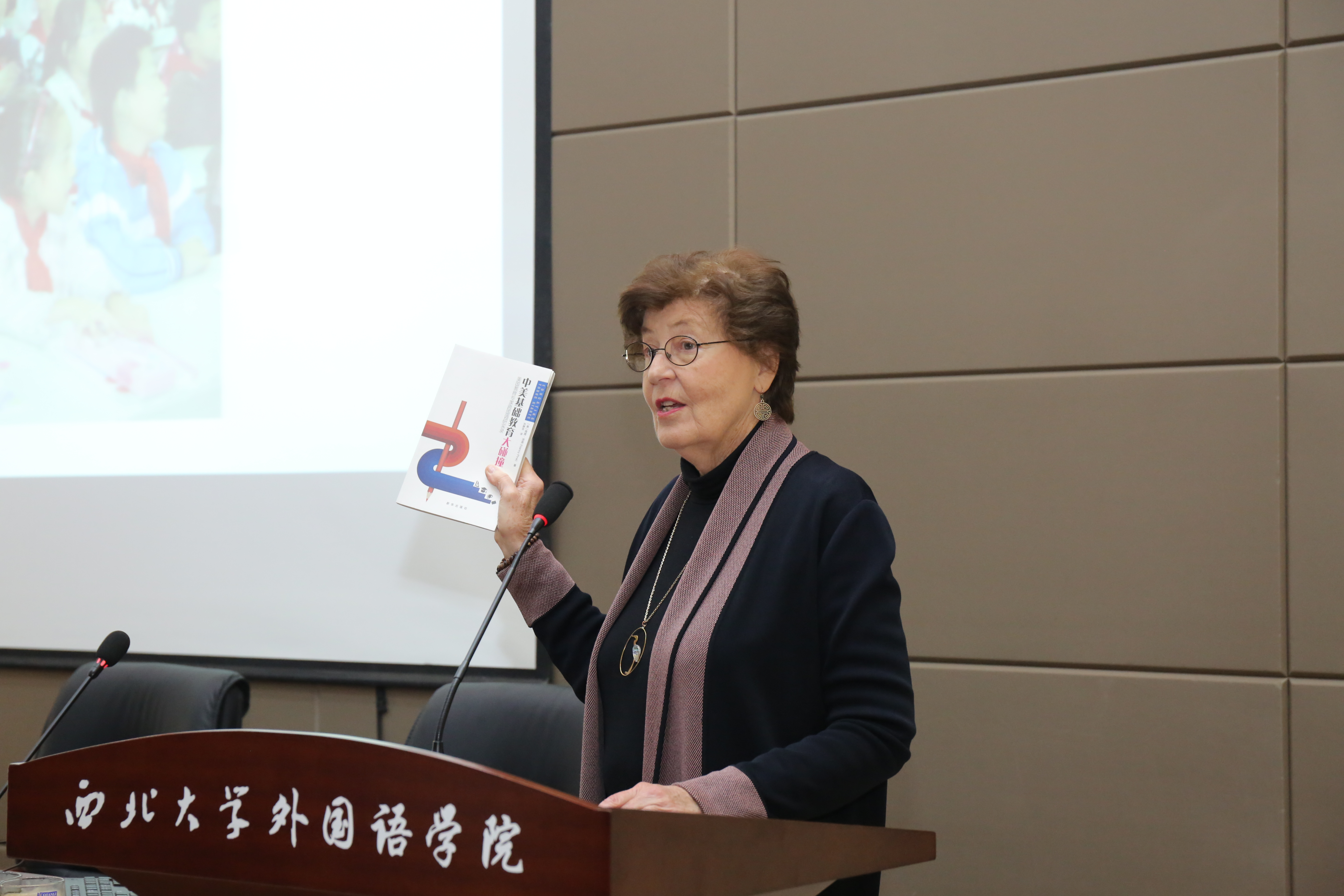 10月24日下午,美国著名中国现代史专家、社会活动家雪莲•估伦女士应外国语学院邀请,在我院外语第二课堂作了题为“中美教育”的报告。讲座由外国语学院院长胡宗锋教授主持。