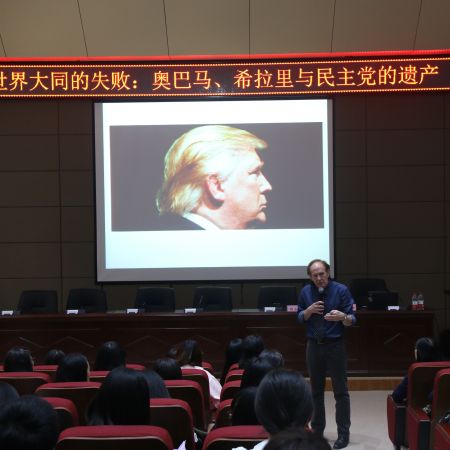 4月24日,美国富布莱特杰出教授、丹麦哥本哈根大学资深教授罗素·邓肯做客我院。在外国语学院第二课堂活动中心做了题为“世界大同的失败:奥巴马、希拉里和民治党的遗产”的报告。此次报告由外国语学院副院长任海棠教授主持,外国语学院师生参与了本次活动。