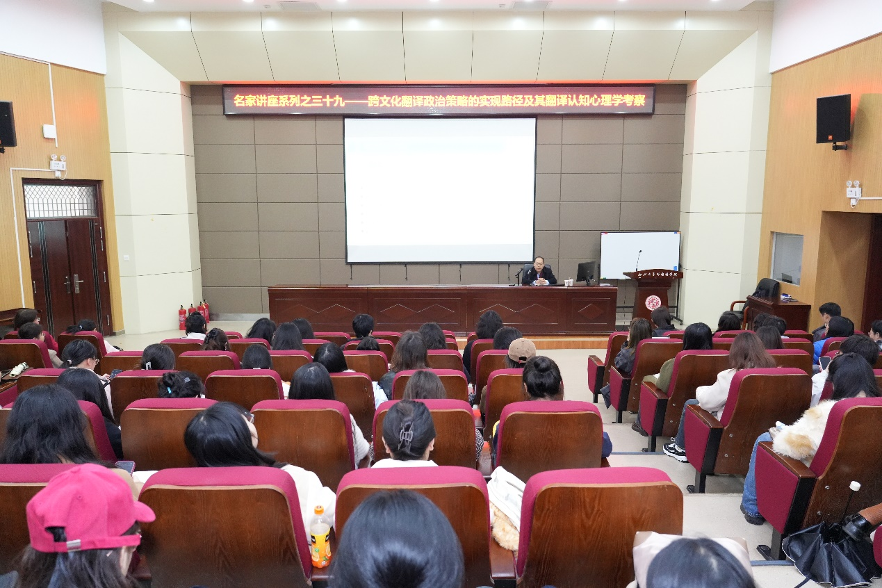 2024年11月13日下午,西安工程大学二级教授、博士生导师、图书馆馆长、中国翻译协会专家会员、中国英汉语比较研究会常务理事、陕西省翻译协会副会长胡伟华教授做客必赢亚州242“名家讲座”,为师生作了题为“跨文化翻译政治策略的实现路径及其翻译认知心理学考察”的讲座。讲座由外国语学院副院长苏蕊主持。校内近一百四十名师生聆听了讲座。
