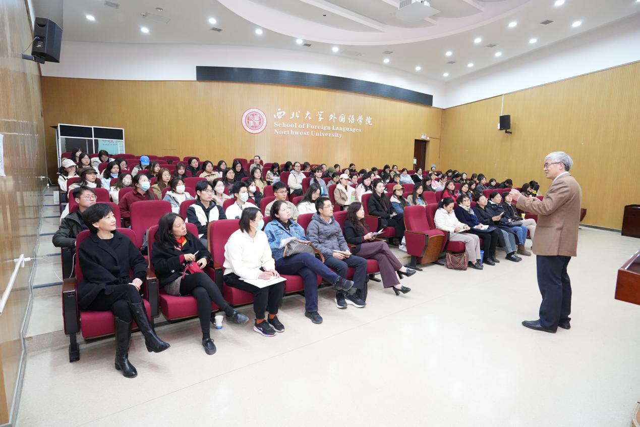 2025年3月28日下午,北京大学外语学院教授、博士生导师、北京大学世界传记研究中心主任、跨文化研究中心秘书长、中外传记文学研究会会长、世界文学学会会长、世界生态文化组织主席、国际传记文学学会创始人、中国东盟跨文化研究院创始人赵白生教授做客西北大学“名家讲坛”暨外国语学院“吴宓大讲堂”第一讲,为师生作了题为《日记文学:世界文学的底层逻辑 ——<吴宓日记>深度剖析》的讲座。讲座由外国语学院副院长苏蕊主持。校内约一百一十名师生聆听了讲座。