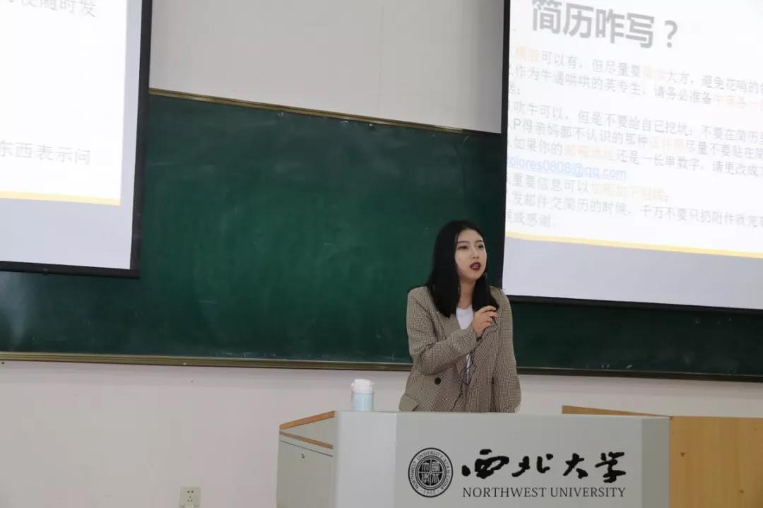4月9日晚,学院接着进行了就业经验分享会,邀请了就业至新东方的李依彤、外派赴埃塞俄比亚就业的张海洋,同时我们还特别邀请了学院2006级的田媛学姐回来从就业单位的角度进行了分享。李依彤详细讲述了在就业过程中就业单位选择、简历制作等方面经验。张海洋介绍了关于外派的知识及注意事项。田媛学姐则从“过来人”的角度讲述了大学不同阶段应该注意的事项,同时讲述了在就业过程中兴趣、方向等需要注意的问题。分享会之后进行了更进一步的自由交流。