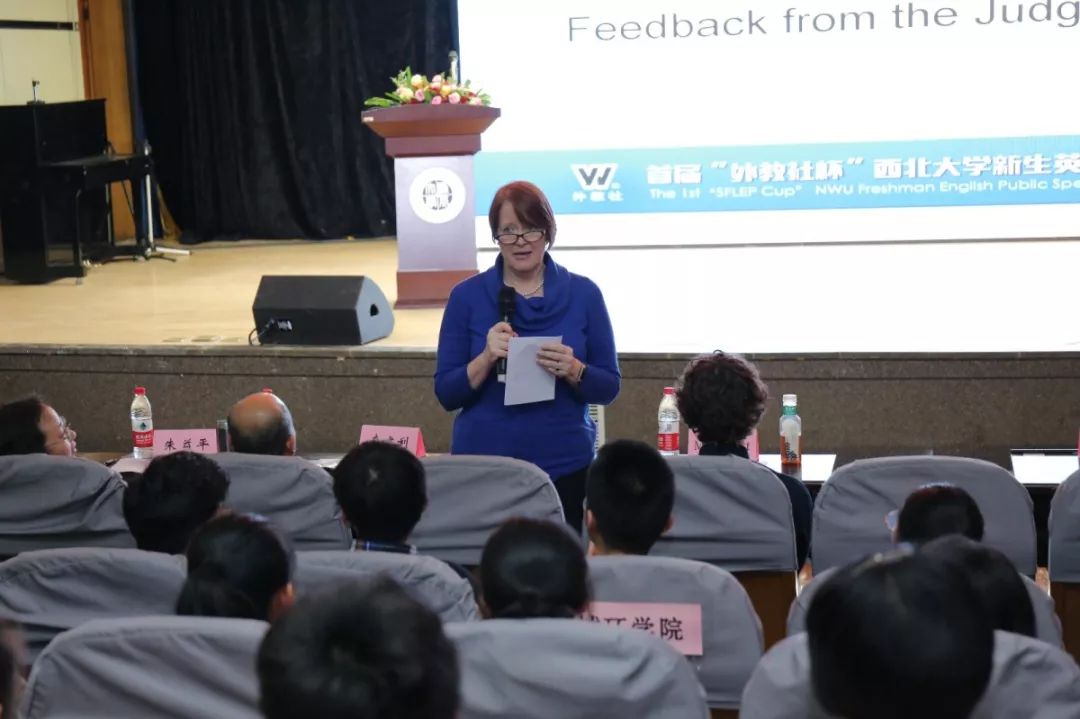 2018年11月21日下午,2018“外教社杯”西北大学首届新生英语演讲赛决赛在长安报告厅举办。担任本次比赛评委的有外国语学院李建利教授,朱益平教授,任海棠教授和曹若男副教授。另外,外籍教师Cynthia Hunt,外籍教师Mark Scott担任比赛的提问评委。