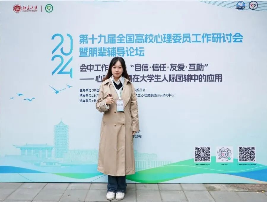 为加强高校心理委员工作队伍建设, 中国心理学会心理危机干预工作委员会于2024年10月17-18日在北京大学召开了第十九届全国高校心理委员工作研讨会暨朋辈辅导论坛。外国语学院2021级本科生应心怡由学校推荐参加了本次论坛。