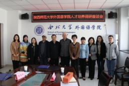 曹若男院长首先对陕西师范大学外国语学院董增云书记一行前来我院进行调研座谈表示热烈欢迎。会中,董增云书记简要介绍了陕西师范大学外国学院的建院历史、学科发展、科研成果、师资队伍、学生培养等各方面的整体情况。曹若男院长也对我院的基本情况做了简要描述,重点强调了“外语+”的学科建设发展思路。王军书记简要介绍了相关党建工作的一些有效举措。苏蕊副院长对学院的学科发展历程做了简要梳理。李蓂副院长重点介绍了大学英语改革及学科竞赛的相关情况。赵明星老师分享了学生工作的相关经验和成果。随后,参会双方就外语学科建设、人才培养、课程改革等问题进行了深入的沟通和交流。最后,王军书记与董增云书记互赠礼物,表达了兄弟院校之间的深情厚谊,共同期待彼此互通有无,加强合作,共谋发展。