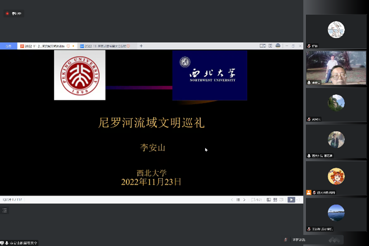 2022年11月23日下午2点30分,北京大学李安山教授做客我校名家讲坛,为我院师生做了精彩的线上讲座。讲座特邀西北大学中东所前所长黄民兴教授作为评议人,西北大学叙利亚研究中心主任兼非洲研究中心主任王新刚教授也应邀参与了讲座交流。本次讲座通过腾讯会议方式进行,由我院曹若男院长主持,全院300名师生聆听了讲座。