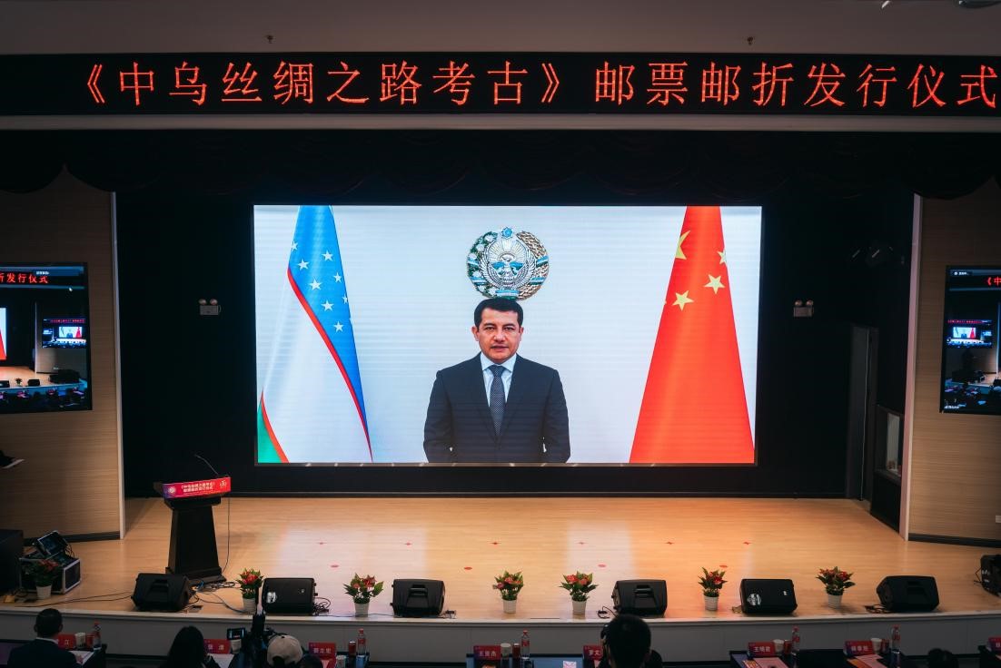 中国驻乌兹别克斯坦大使姜岩女士,乌兹别克斯坦驻华大使阿尔济耶夫·法尔霍德先生,中国驻乌兹别克斯坦大使馆文化参赞迟润林先生,乌兹别克斯坦科学院国家考古中心主任马克苏多夫·法尔霍德先生,乌兹别克斯坦邮政公司生产总监诺伊拉·加里法娜女士,中国集邮有限公司副总经理赵爱国先生等中乌双方相关部门单位领导人参加了发行仪式,并就《中乌丝绸之路考古》邮票邮折的发行意义、中乌联合考古成果等进行了发言。