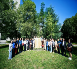颁奖仪式之后,参会者一起向“中美友谊碑”敬献黄玫瑰,向架桥者——海伦·斯诺致敬,带给她中国的好消息。还到西学楼一层参观我院举办的“架桥人生——海伦·福斯特·斯诺图片展”。我院“RED记忆讲解队”刘亦洲和曾一新两位同学提供了讲解服务。