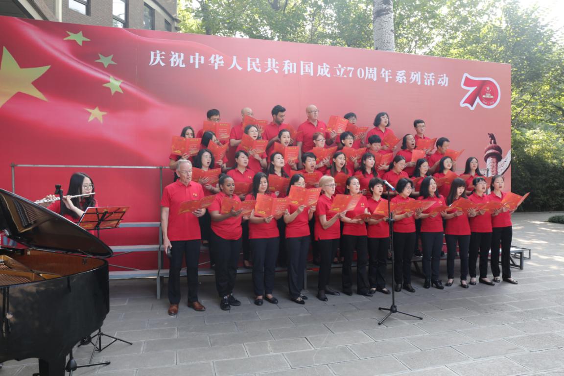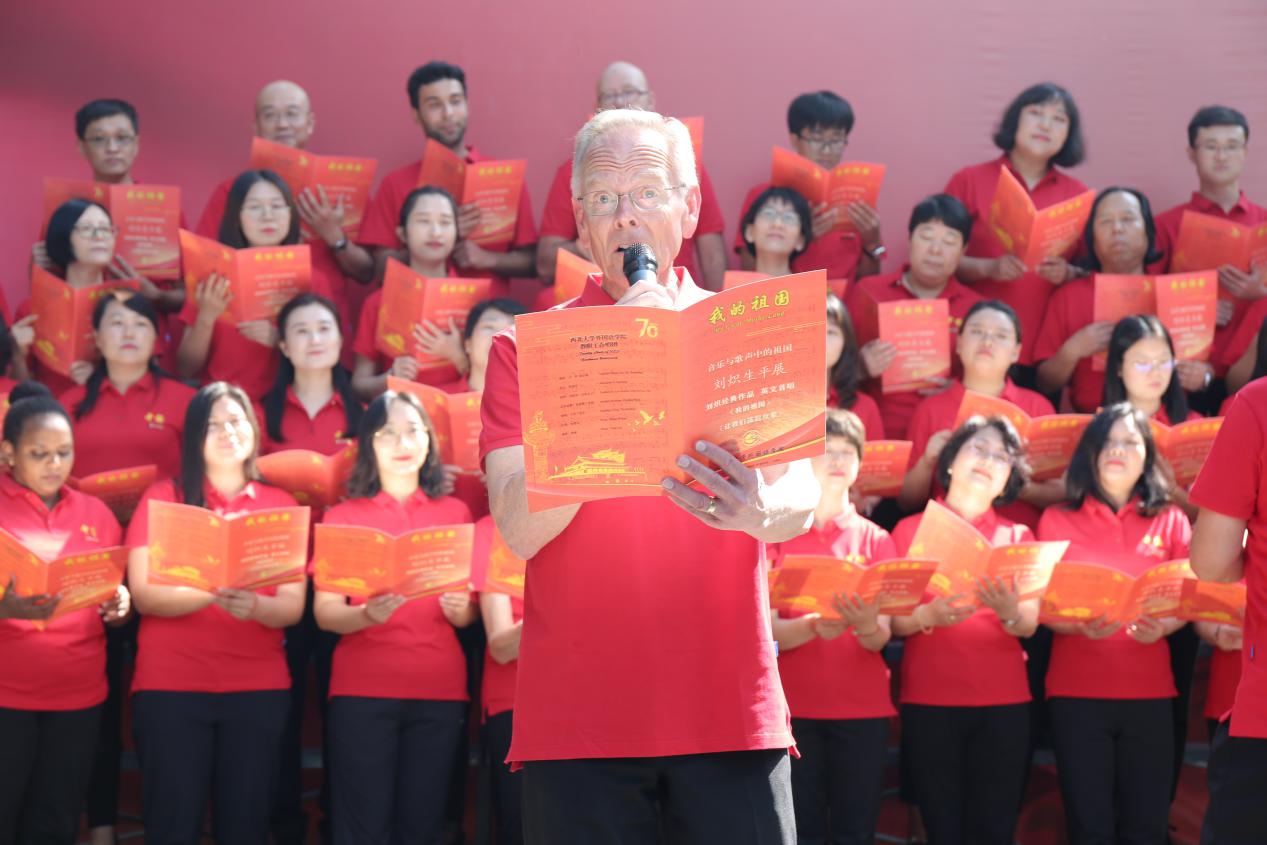 必赢亚州242教职工合唱团受邀参加开幕式,刘炽之子刘欣欣亲自指挥,全国英文首唱刘炽先生经典作品《让我们荡起双桨》、《我的祖国》。用歌声为祖国献上一份别样的生日礼物!受到在场师生一致好评。