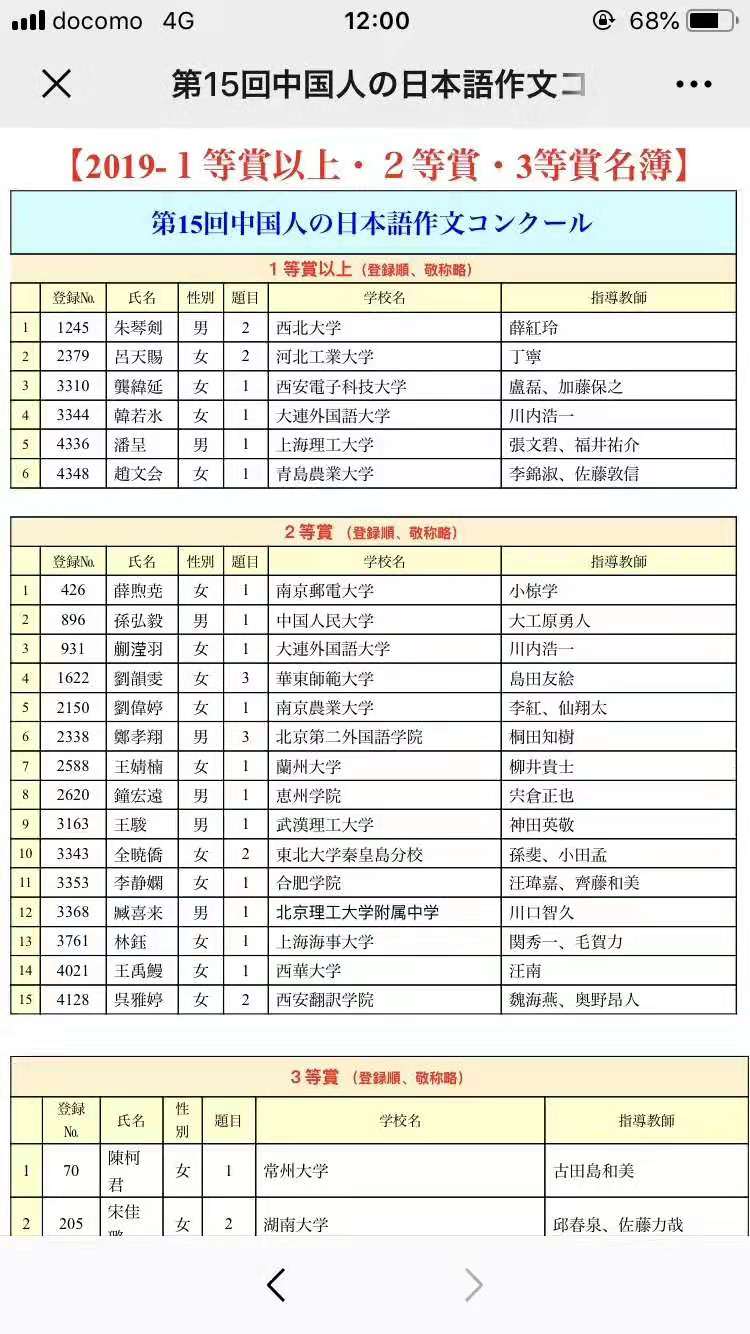 迄今为止,该大赛一等奖以上几乎被北上广和沿海地区的大学所包揽,而且指导教师大多为日本外教。而本次必赢亚州242学生朱琴剑同学入围一等奖以上(前6名),且指导教师是中国教师,说明西北地区的日语教育水平也在不断提高,同时也证明本土教师照样也能在写作指导上作出成绩。
