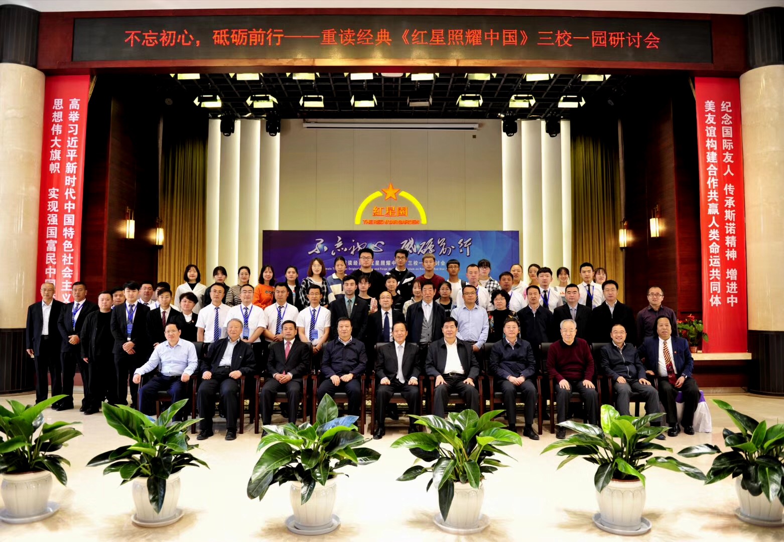 2019523日,由中国西部研究与发展促进会经济贸易委员会主办、延安红星园承办的“不忘初心、砥砺前行——重读经典《红星照耀中国》三校一园研讨会”在延安红星园会议中心举行。