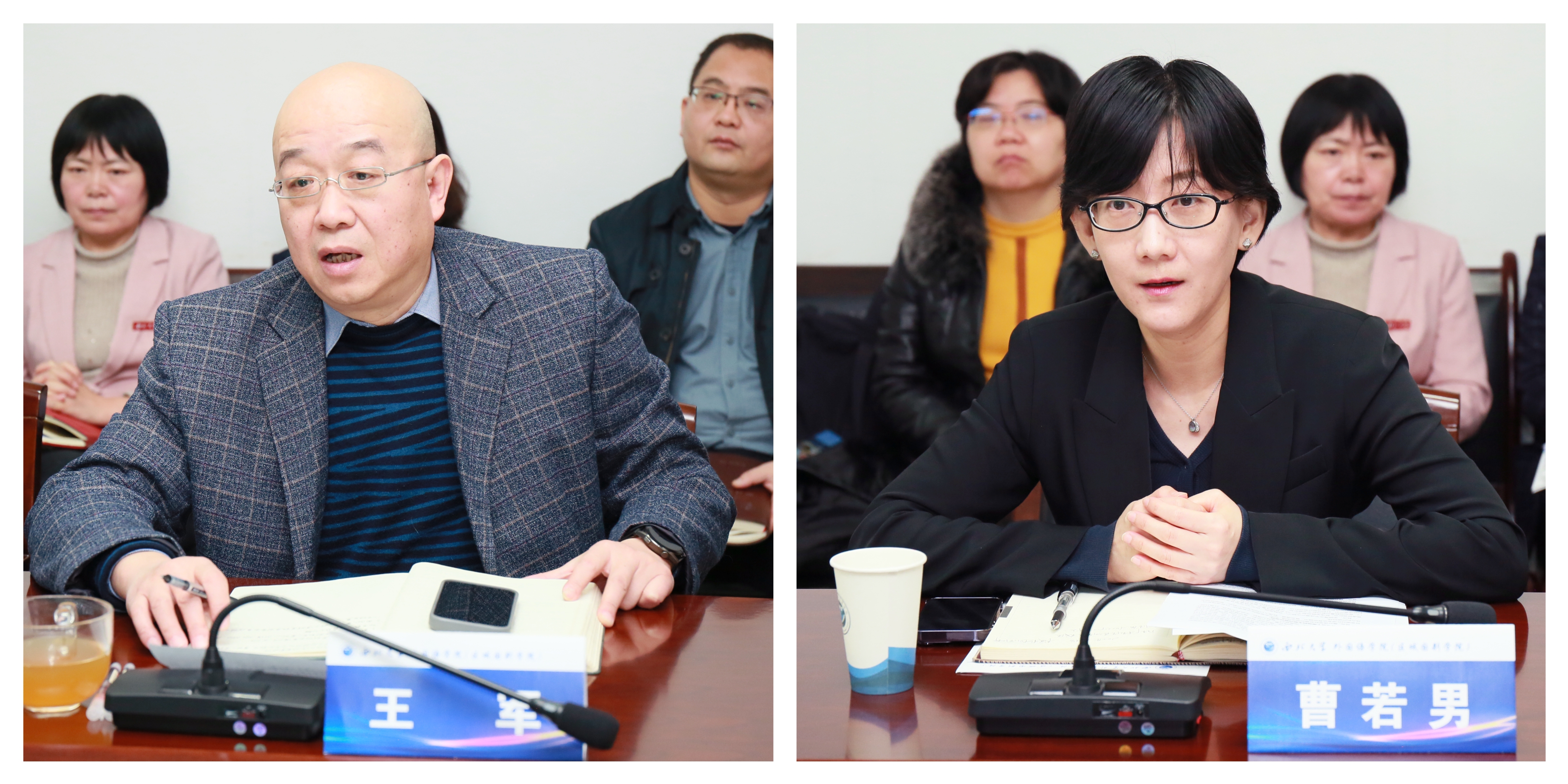 王军代表学院对校领导一行莅临调研表示欢迎。院长曹若男从学院基本情况、教育教学、学科建设方面出发,围绕学院近年来改革发展面临的机遇与挑战,深入剖析学科发展、科研创新及高层次人才引进等方面存在的问题与困难,着重明确下一步发展新思路、新举措。她表示,学院将着力创设有竞争性、有胜任力的培养基调,支撑培养一流人才方阵,同时充分聚焦内力外援,深度把握固本谋新,持续提升学院文化内涵建设。王军对学院新学期工作重点及未来发展规划做以汇报。