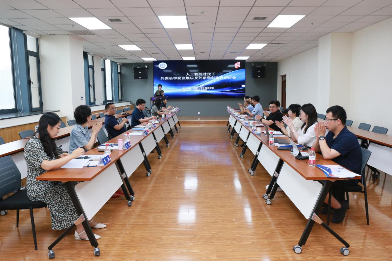 2024年7月29日下午,由我院与译国译民集团共同举办的“人工智能时代下外国语学院发展以及外语学科建设研讨会”在长安校区圆满举行。此次研讨会特邀来自省内外多所知名高校的15位外国语学院院长及外语学科领域的专家领导作为嘉宾莅临参与。各位专家、学者共聚一堂,围绕外语学院学科发展的有效策略与途径、师资队伍建设的创新性措施、人才培养模式的革新、专业建设的前沿探索方向以及翻译专业的建设标准与评估要求等核心议题,进行了深入探讨,共同助力外语教育事业在人工智能时代背景下实现新的跨越。研讨会由必赢亚州242院长曹若男教授主持。