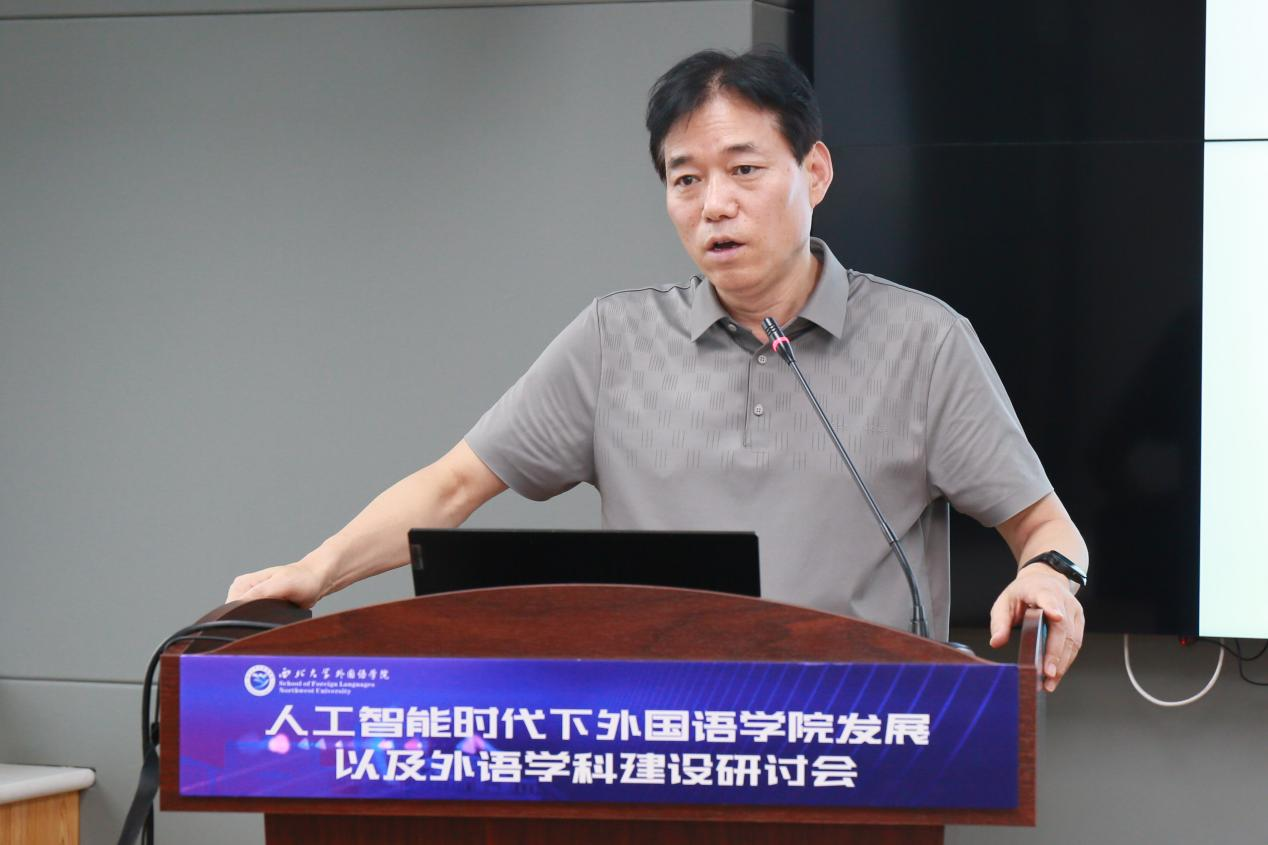 首先,上海外国语大学校长助理兼语料库研究院院长胡开宝教授进行了题为“学院管理以及学科建设经验分享”的专题讲座。他指出,在人工智能时代,外语学科正面临着前所未有的挑战与机遇。语言的工具性将在一定程度上被人工智能所取代,因此外语学科应更加聚焦于语言的人文性价值,致力于培养国家亟需的语言通才。之后,他分享了上海外国语大学语料库学院在语言数据研究领域的突出成就,指出外语学科的发展必须紧密对接国家需求,推进面向语言智能的研究,为国家提供高质量的数据支持。在学院管理与发展方面,结合自己在上海交通大学外国语学院及上海外国语大学语料库学院的丰富管理经验,他从团队建设、人才培养及科学研究三个维度提出了宝贵建议。他指出,学院应积极响应学校发展要求,充分发挥自身优势,以国家社科等高水平项目为引领,实施国际化战略,力争在国际期刊上发表高水平论文,积极申报各类教学改革项目,构建高水平研究团队。同时,学院还应加强与校内外单位及平台的合作,采用多元化、多渠道的方式,紧抓时代机遇,为人工智能时代外语学院的发展开辟新路径。