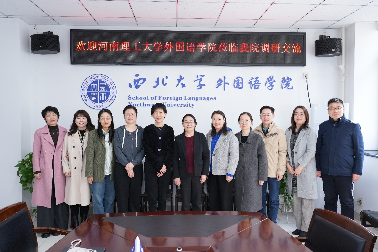2025年3月19日下午14:00,河南理工大学外国语学院李惠敏院长一行五人前来我院进行调研交流,随行人员包括吴敏副院长,英语系主任刘庭华老师,日语系主任段继绪老师和区域国别研究带头人郝葵老师。曹若男院长主持调研交流会,英日语系主任、MTI中心主任、大学英语教研一、二部主任及院长助理参加了会议。本次调研交流会主要围绕当前外语学科专业发展的紧迫形势,双方共同探讨破解之法,寻求转型思路和发展路径,主要议题包括:区域国别研究及学科建设,专业调整优化,师资队伍建设及高水平成果产出等。