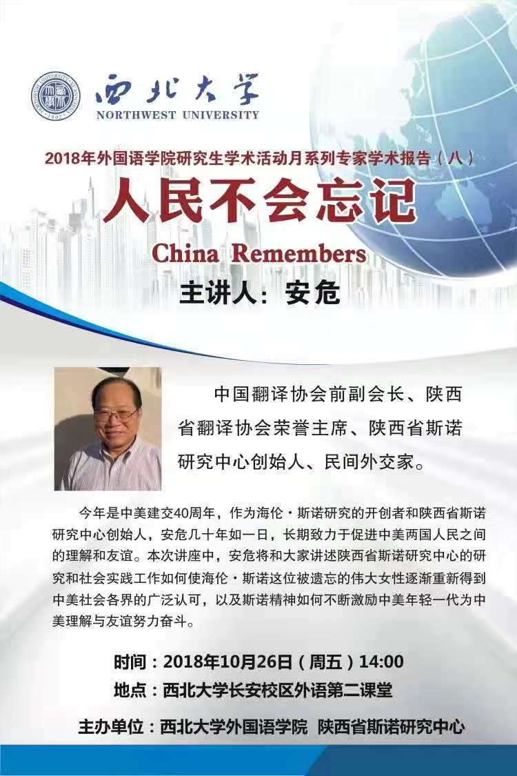 关于《人民不会忘记》学术报告及第七届海伦·斯诺翻译奖竞赛颁奖仪式暨“中美理解与友谊树”植树一周年纪念的通知