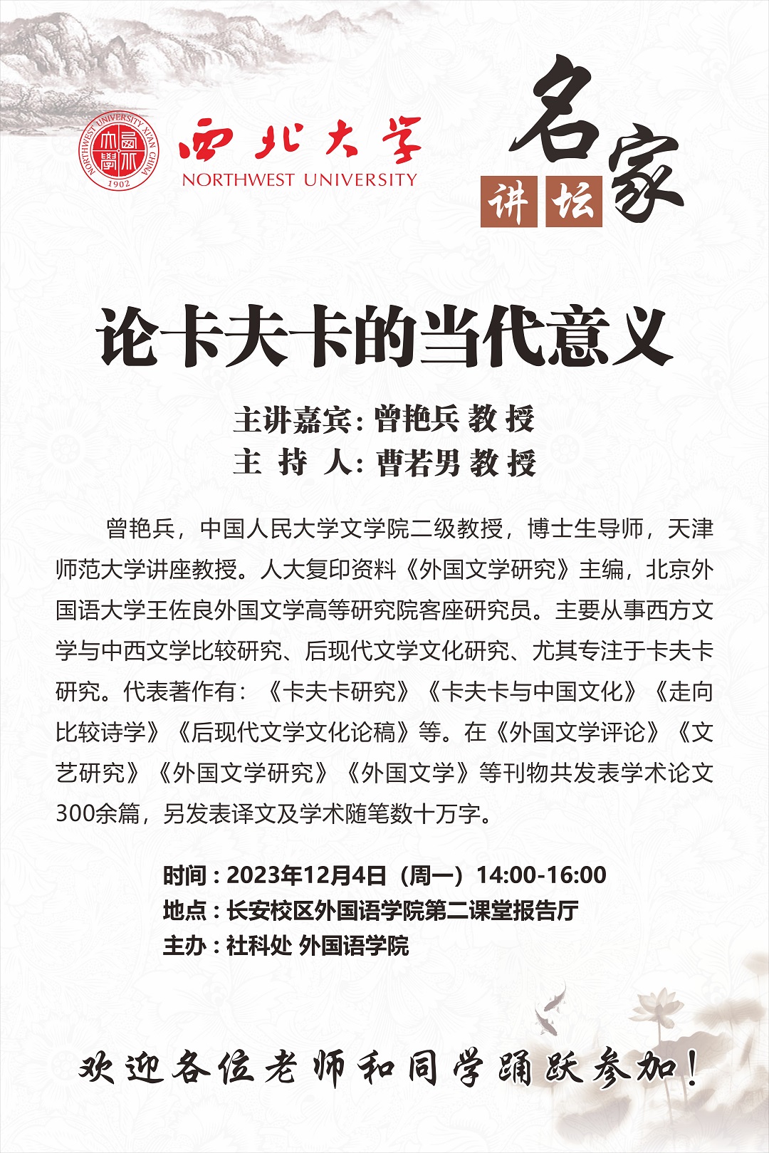 必赢亚州242名家讲座系列之二十七——论卡夫卡的当代意义